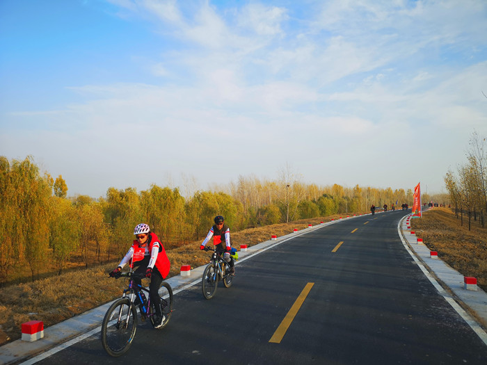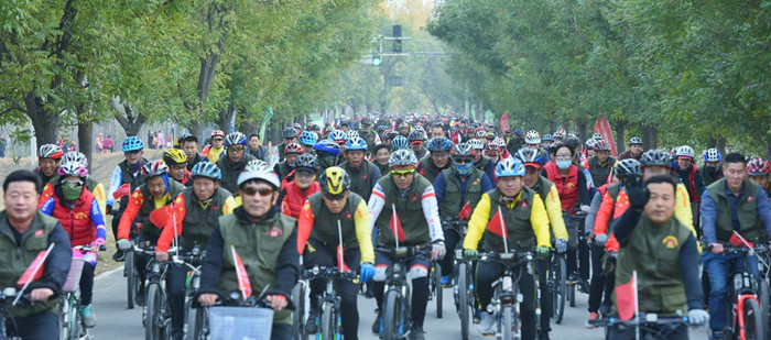 11月18日,蘭考。天朗氣清,惠風(fēng)和暢。“紅色蘭考·綠色出行”——蘭考·黃河灣千人騎行活動(dòng)在風(fēng)光優(yōu)美的黃河灣風(fēng)景區(qū)舉行。蘭考縣干部群眾、騎行愛好者共1000余人參加活動(dòng)。