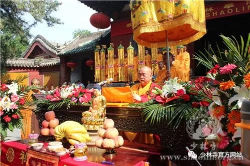上午九時(shí),延燈等4名洋弟子合掌如儀迎請(qǐng)永信大和尚至山門,在山門前備好的案臺(tái)上,香花鮮果供奉著達(dá)摩祖師像,少林僧眾列隊(duì)迎接遠(yuǎn)道而來的歸山弟子。230名美國弟子列隊(duì)少林寺山門前,在“歡迎美國少林拳法弟子歸山朝圣”的大紅條幅映襯下,少林寺充溢著法喜氛圍。