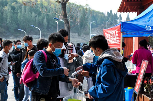 景區(qū)防疫不松懈,一絲不茍的為游客登記信息和測(cè)量體溫。