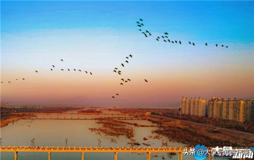 日暮遠(yuǎn)山,晚霞燃燒,碧波映城,飛鳥(niǎo)翱翔……在河南洛陽(yáng),當(dāng)冬日的太陽(yáng)收集了人們一天的幸福將要沉沉的回歸時(shí),嵩縣陸渾湖畔正演繹著人間絕色,美得不可名狀。