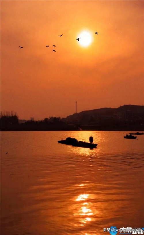 當(dāng)一輪紅日緩緩西沉,碧波萬(wàn)頃的陸渾湖翻起一層層的霞光,由遠(yuǎn)及近,水天之間,所有的東西都漸漸被渲染成了紅色,或深紅,或淺紅。此刻還巢的飛鳥(niǎo)翱翔于陸渾湖上空,穿過(guò)紅日,掠過(guò)城市高樓,那份絢彩的激情,不容許忘懷,大自然的雕琢讓人如同身處幻境一般。