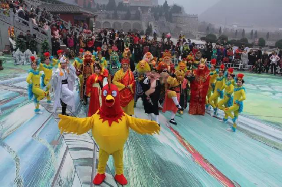 辭“猴”迎“雞”西游情景。褐販匚饔谓(jīng)典,與偶像親密接觸。每天上午11點(diǎn),下午4點(diǎn),在3D畫廣場將呈現(xiàn)景區(qū)工作人員自編自演的西游記情景劇。