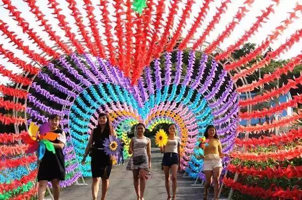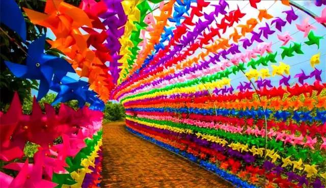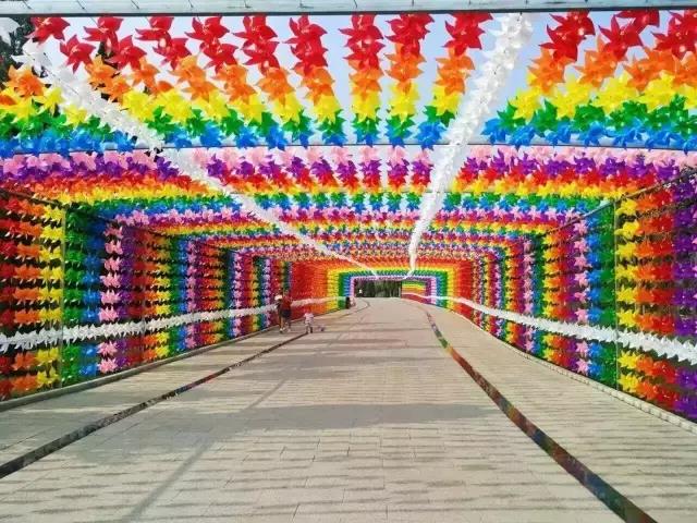 湖畔七彩風(fēng)車長(zhǎng)廊,聽風(fēng)的聲音,還你一段童年時(shí)光。