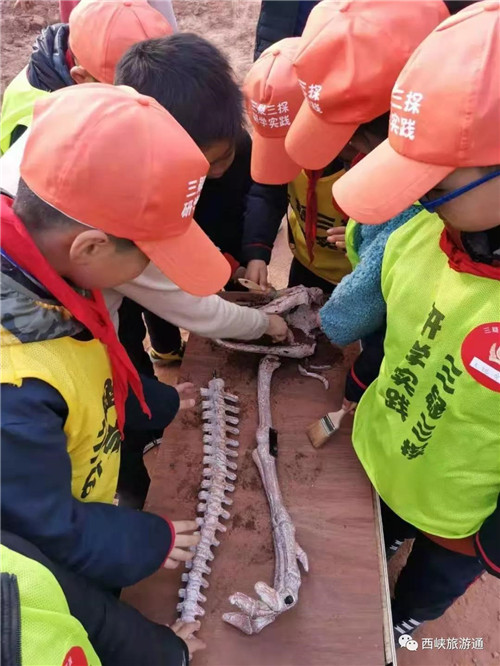 啟動(dòng)儀式后,研學(xué)旅行執(zhí)行團(tuán)隊(duì)帶領(lǐng)學(xué)生和家長(zhǎng)代表,開(kāi)始為期一天的恐龍遺跡園研學(xué)之旅。探尋生命尋找恐龍起源,體驗(yàn)“三疑三探”研學(xué)特色課程。