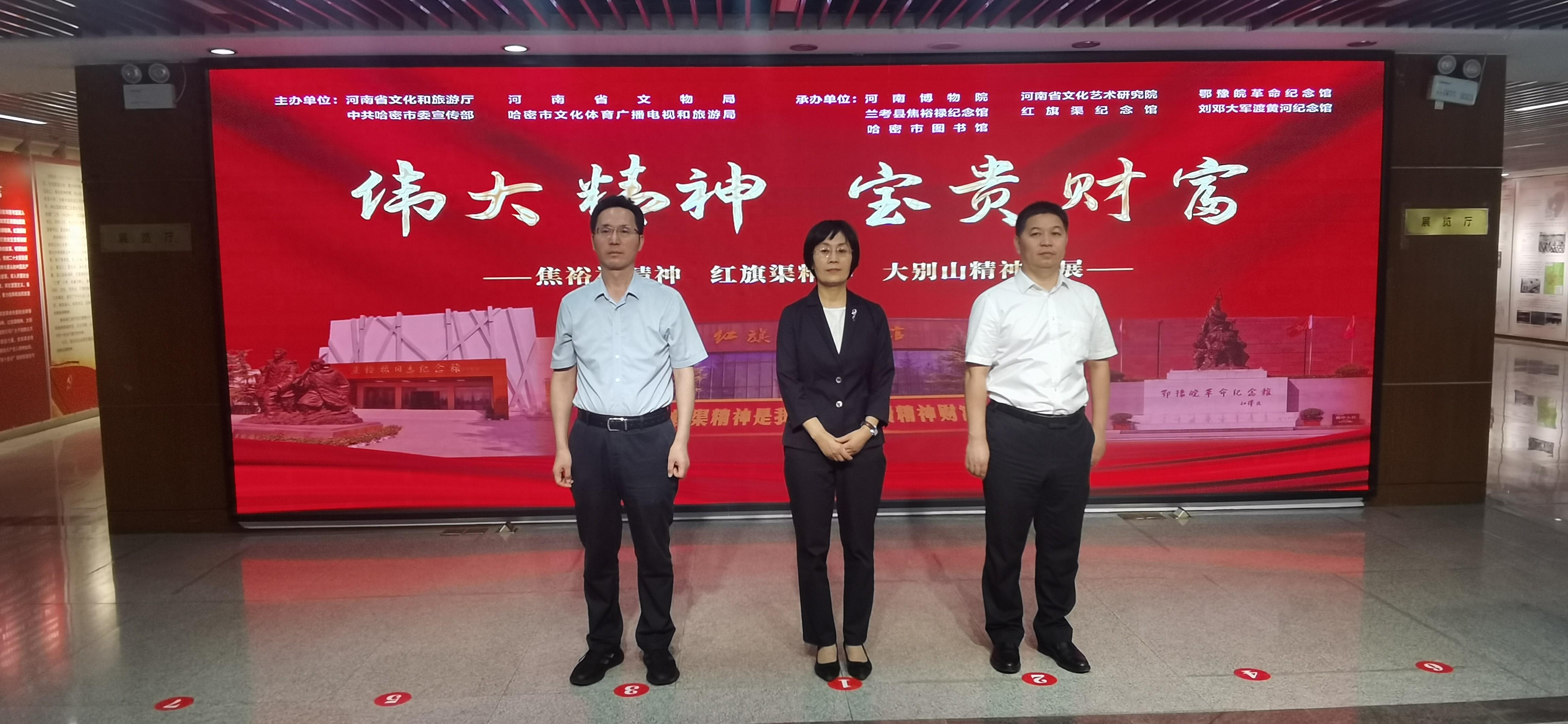 8月19日上午,由河南省文化和旅游廳、河南省文物局、哈密市委宣傳部和哈密市文化體育廣播電視和旅游局主辦的“偉大精神 寶貴財富——焦裕祿精神、紅旗渠精神、大別山精神聯(lián)展”在新疆維吾爾自治區(qū)哈密市圖書館開展。河南省文化和旅游廳黨組成員、副廳長王飛,廳黨組成員、省文物局黨組書記、局長任偉,哈密市副市長胡冬明等出席了開展儀式。