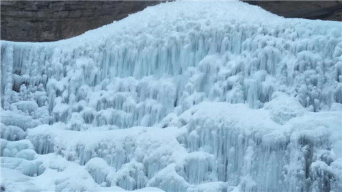 進入冬天的八里溝,仿佛來到了一個冰雪世界、人間仙境,冰柱、冰湖,無不令人向往,結了冰的瀑布像上了結界,更像是一幅靜態(tài)的畫布,讓人不忍靠近。
