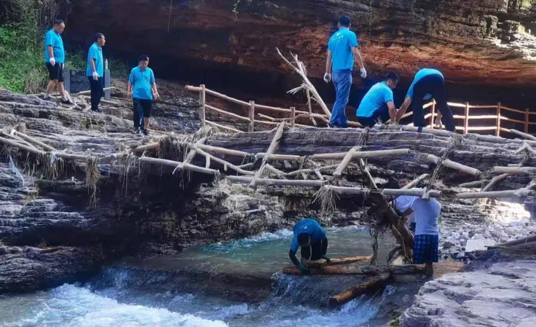 面對(duì)災(zāi)后滿目瘡痍的景區(qū),大峽谷景區(qū)上下同心、積極行動(dòng),他們上下一心,心往一處想,勁往一處使,積極投身到搶險(xiǎn)救災(zāi)工作中,或扛垃圾箱、或鏟淤泥、或修步道、或搶抬材料……僅用一周時(shí)間便完成了災(zāi)害損毀的修復(fù)工作,最大限度降低了這次災(zāi)害對(duì)景區(qū)經(jīng)營(yíng)的影響。這離不開公司支部強(qiáng)力領(lǐng)導(dǎo)、更離不開景區(qū)員工的共同努力。