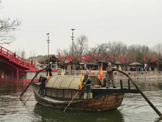 包公巡視汴河漕運(yùn)即使是冬天,演員們?yōu)榱搜莩觯?