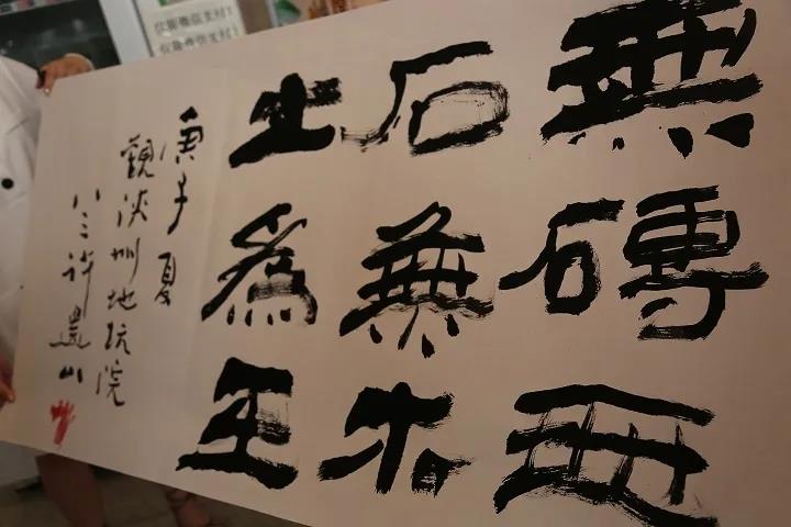 參觀完后,藝術(shù)家們已經(jīng)按捺不住心中的靈感,拿出文墨寶貝開(kāi)始了創(chuàng)作。書(shū)者篆隸行草、畫(huà)者山水花鳥(niǎo),紛紛開(kāi)始案前揮毫潑墨……
