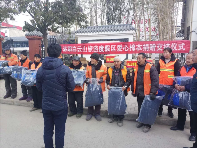 在2019年元旦佳節(jié)即將來(lái)臨之際,2018年12月29日,洛陽(yáng)白云山旅游度假區(qū)愛(ài)心慰問(wèn)團(tuán)隊(duì)在洛陽(yáng)白云山文化旅游發(fā)展有限責(zé)任公司副總經(jīng)理寇曉華的帶領(lǐng)下,前往嵩縣車村鎮(zhèn)、白河鎮(zhèn),向一線環(huán)衛(wèi)工人捐贈(zèng)了愛(ài)心棉衣等慰問(wèn)品,給他們送去了新年的祝福和問(wèn)候。