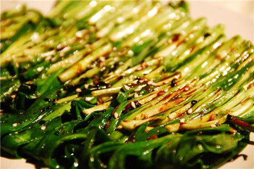 ③莖葉類的蔬菜,比如白菜生菜韭菜,茼蒿等遇熱容易快速散失水分,所以需要卷在豆皮里做成菜卷,再串在簽子上;