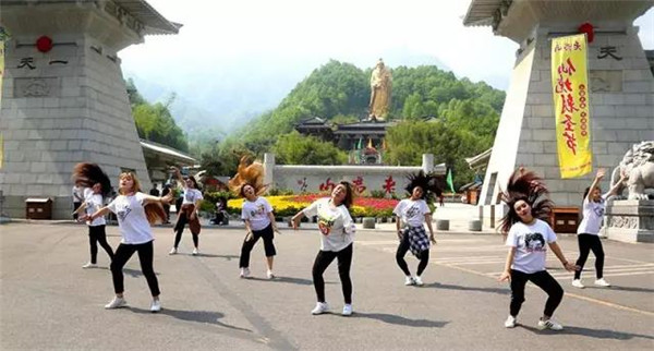 5月1日,五一小長假第三天,河南老君山景區(qū)。三十余名妙齡女子在平陽廣場集體?扉W。在大秀激情魅力的快舞同時,以年輕人特有的方式倡導全社會“文明記心中,文明旅行、文明出游從我做起!”