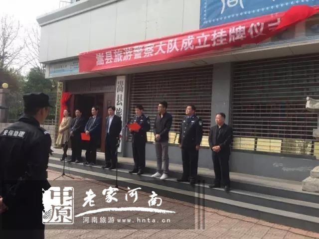近日,嵩縣旅游警察大隊(duì)正式掛牌成立,這是一支專業(yè)旅游執(zhí)法隊(duì)伍。白云山作為嵩縣主要旅游景點(diǎn)之一,嵩縣縣委、縣政府為白云山配備了專用警務(wù)車輛和干警,并在此設(shè)立旅游執(zhí)法中隊(duì)。嵩縣縣委常委、副縣長(zhǎng)王九位、嵩縣公安局政委張永良、洛陽(yáng)白云山文化旅游發(fā)展有限責(zé)任公司總經(jīng)理蘭海波等領(lǐng)導(dǎo)出席揭牌儀式。