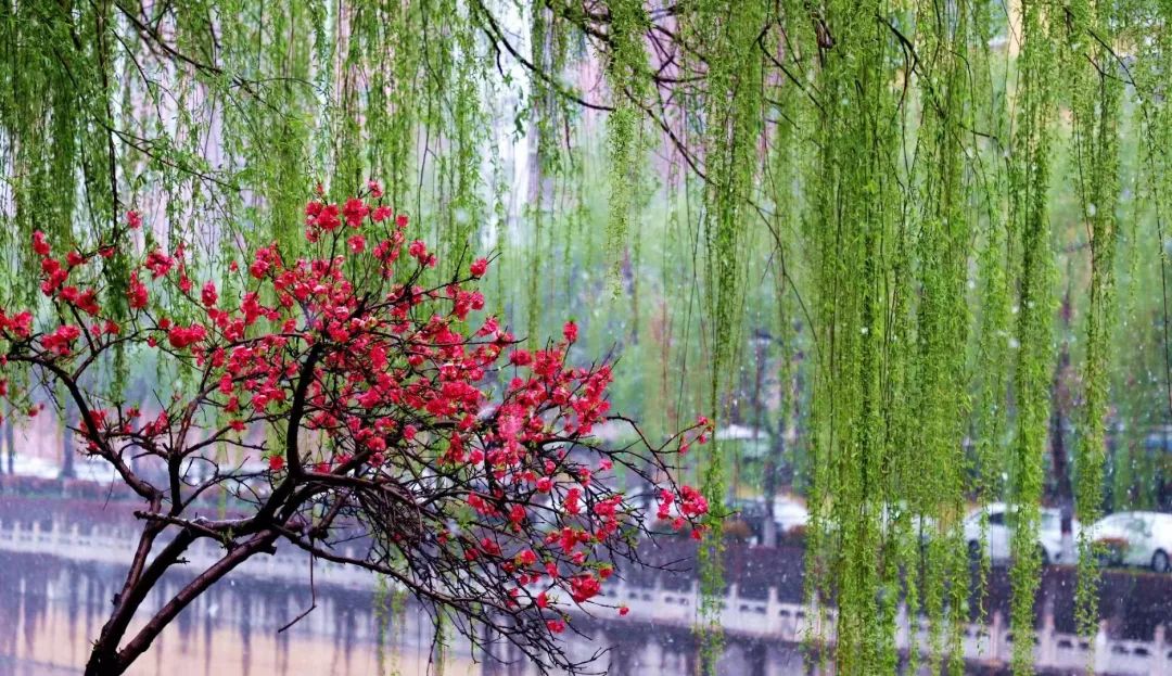 紛揚(yáng)桃花雪,驚艷王屋山。山桃飛霞,青柳沐風(fēng),正是一年春好處。