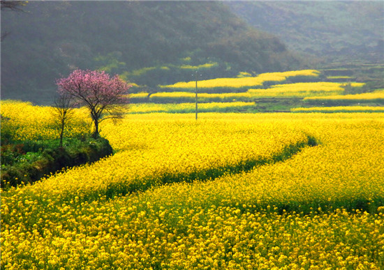 就是少林寺的所在地,那里的山上有很多油菜花,層層疊疊地繞著山轉(zhuǎn),很漂亮!順路也可以爬爬嵩山哦!