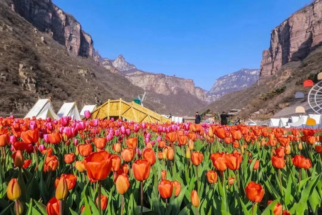 風(fēng)車(chē)、奶牛、木橋、帳篷,五顏六色的郁金香裝點(diǎn)了寶泉大峽谷,一朵朵郁金香爭(zhēng)奇斗艷,橫看豎看,隨便“咔擦”一張都是大片!