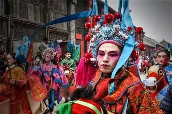 每年的火神廟會(huì)除了外地人和游客,所有鎮(zhèn)里的人都會(huì)參與到表演當(dāng)中。身著盛裝,再化上精致的妝容,行走在古色古香的順河古街,會(huì)讓人不由的產(chǎn)生穿越的感覺(jué),恍如隔世一般。