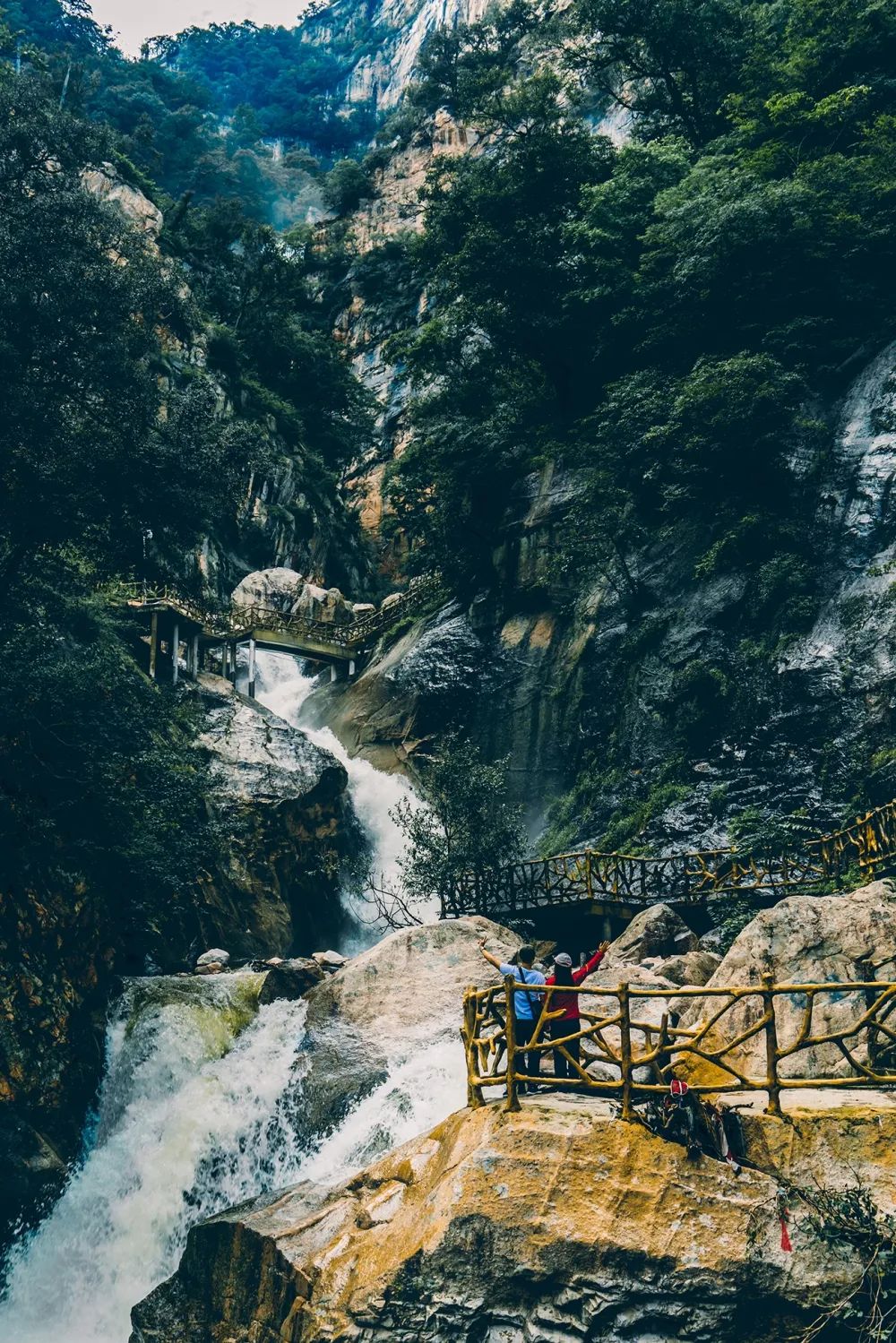 在千米落差的九龍大峽谷共有18處瀑布
