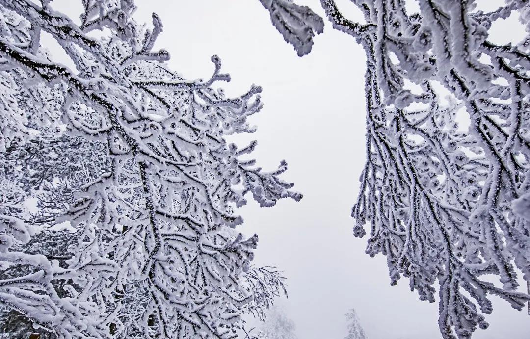 乘上索道將林海雪原盡收眼下,云霧繚繞其間 如臨仙境,拾級而上,沿途霧凇,凝霜掛雪,戴玉披銀,肆意綻放。