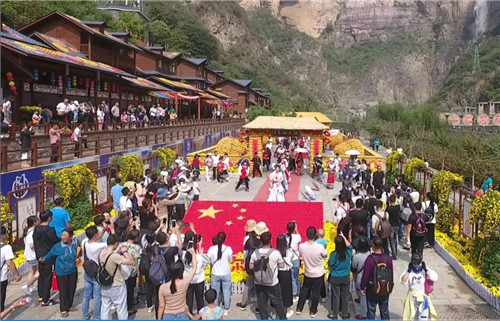 小長假的第二天,寶泉景區(qū)晴空萬里,迎來了國慶長假的小高峰,氣氛比昨天更為濃烈!但是景區(qū)內(nèi)依舊是井然有序。 國慶長假期間正值寶泉山地菊花秋趣文化節(jié),來寶泉豈有不賞菊不賞秋之理。賞菊觀演繹,來寶泉不虛此行。