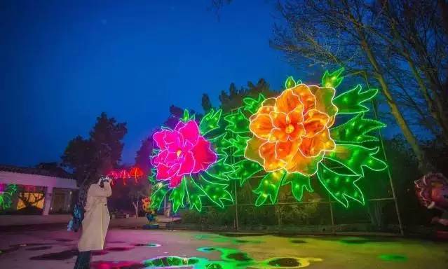 4月1日至5月10日,洛陽(yáng)國(guó)家牡丹園也將舉辦夜場(chǎng)牡丹秀活動(dòng),園內(nèi)投放2000多盞染色投光燈,還有寬十米、高十米的巨型牡丹,約上小伙伴一起欣賞夜色下的牡丹花吧!