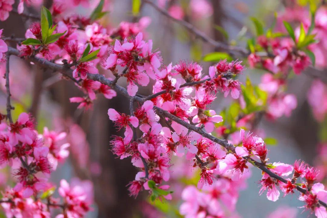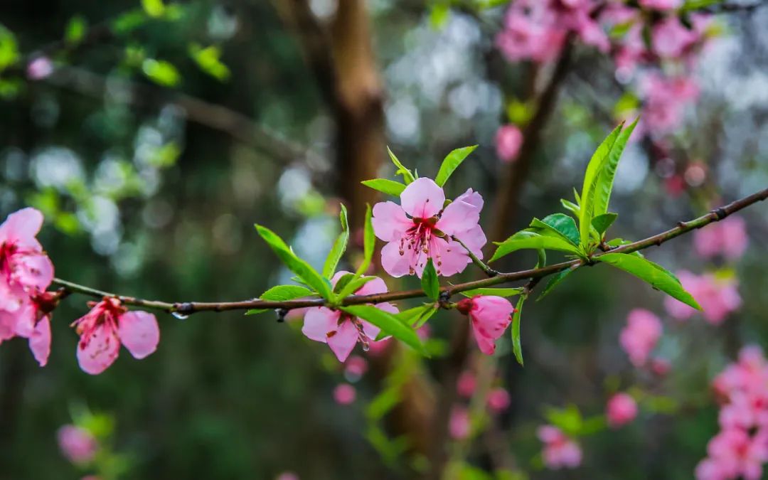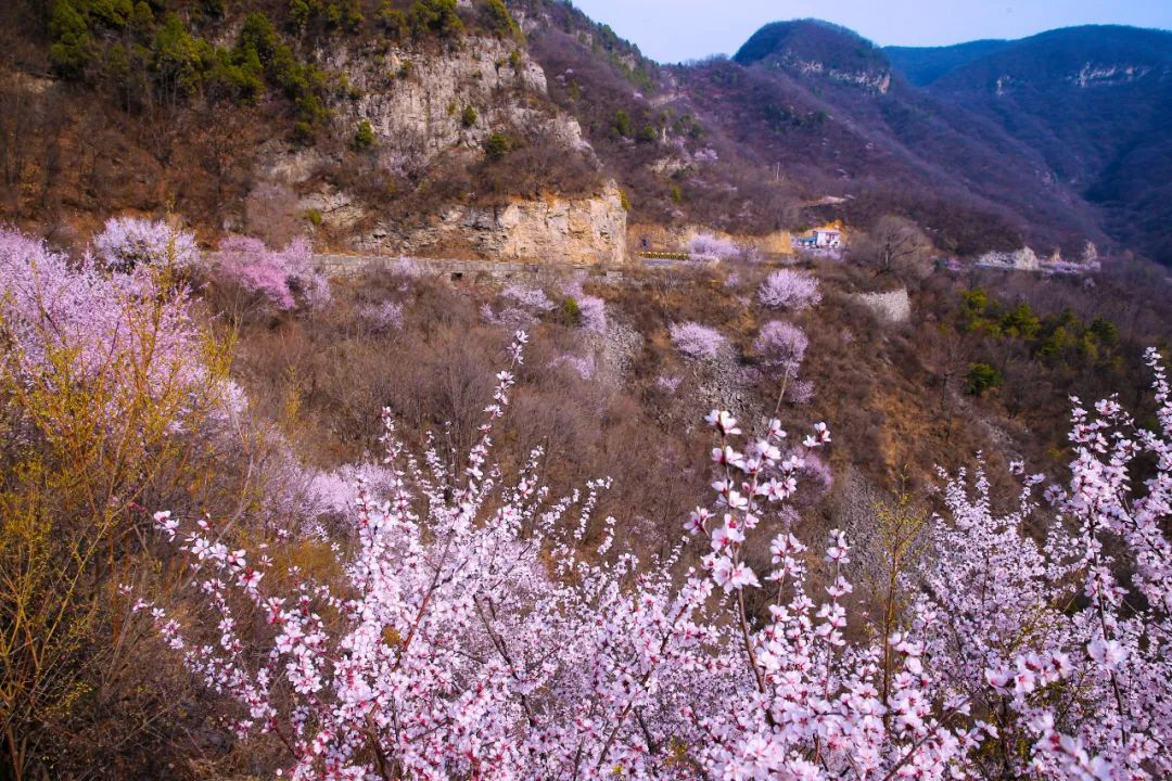 近處熱烈的桃花花海,從峽谷上一層層“流淌溢出”,美得超乎想象 漫山遍野皆是粉色,更有梨花、杏花等山花迎風綻放。