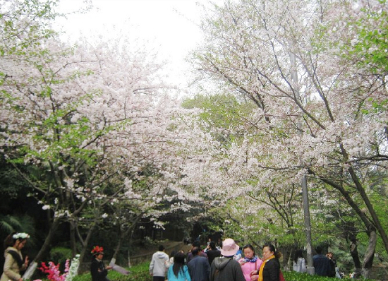 武漢大學(xué)校園內(nèi)有早櫻、晚櫻、紅垂櫻等10多個(gè)品種的櫻花樹。每年3月中下旬,這里櫻花如期開放,凝霞散景、落英繽紛,吸引游人。滿樹花開,晃眼即過,不見子實(shí);ㄆ谥挥邪朐轮玫拿利悪鸦,令游人贊美的同時(shí),也發(fā)出由衷的慨嘆。