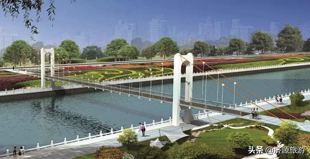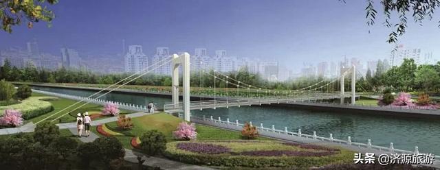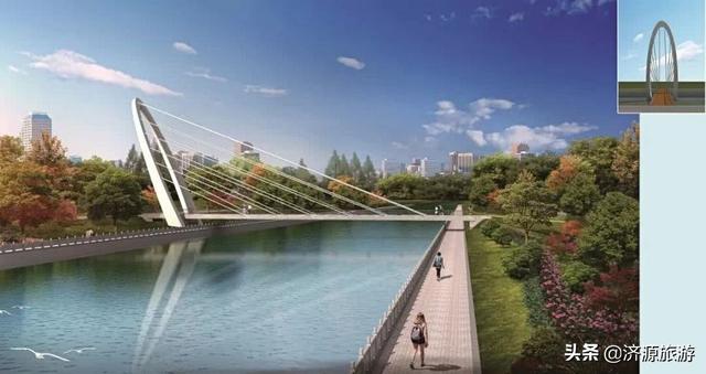 以濟(jì)源“愚公移山”文化為理念,將辛勤勞動的形象加以演化,以高聳的橋塔和富有張力的拉索為設(shè)計語言。拉索力量匯聚于橋塔,體現(xiàn)了濟(jì)源人民眾志成城、力爭上游的精神。