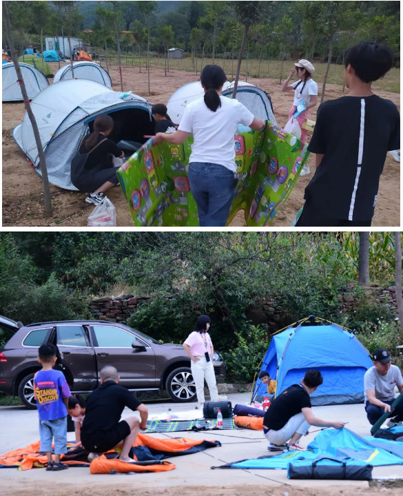落日余暉,夜幕微啟,孩子在鬧你在笑,我們共同搭建山野的家。