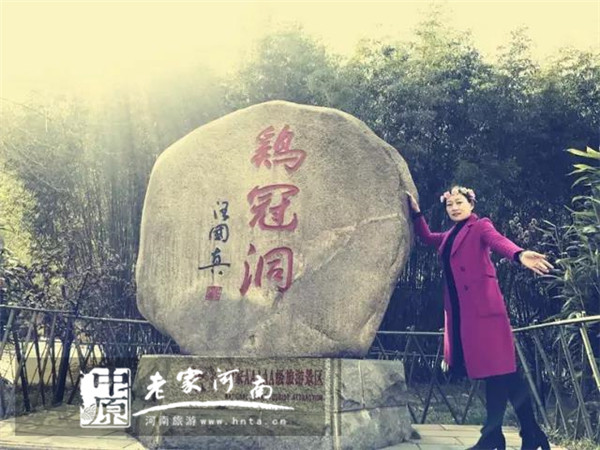 雞冠洞中心廣場上由汪國真書寫的《雞冠洞》志石,是雞冠洞景區(qū)的標志性建筑之一,拍照背景,怎么少的了它!