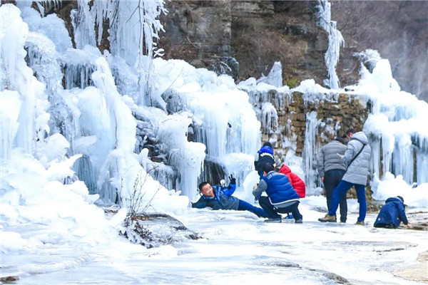 流動(dòng)的泉水沿山體凝結(jié)、定格,懸崖峭壁間形成千姿百態(tài)的冰掛,放眼望去,層層疊疊,美不勝收,八方游客慕“冰”而來(lái),只為一睹這攝人心魄的冰瀑奇觀。