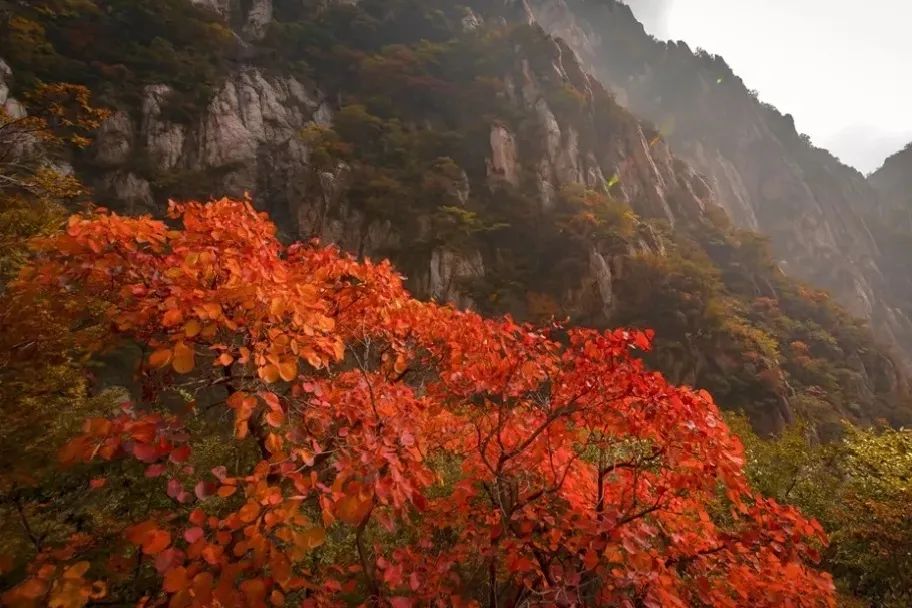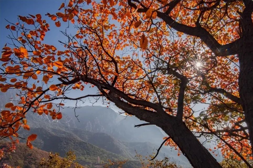 這幾日雨過天晴,連日的陰霾一掃而光,來嵩山感受秋日的暖陽吧。它溫馨靜謐,掛在淡藍色天空,透過火紅的葉子,斑駁地灑在身上,軟綿綿,暖溶溶,變幻的淡淡色彩猶如輪廓光,把秋的風韻在大地上