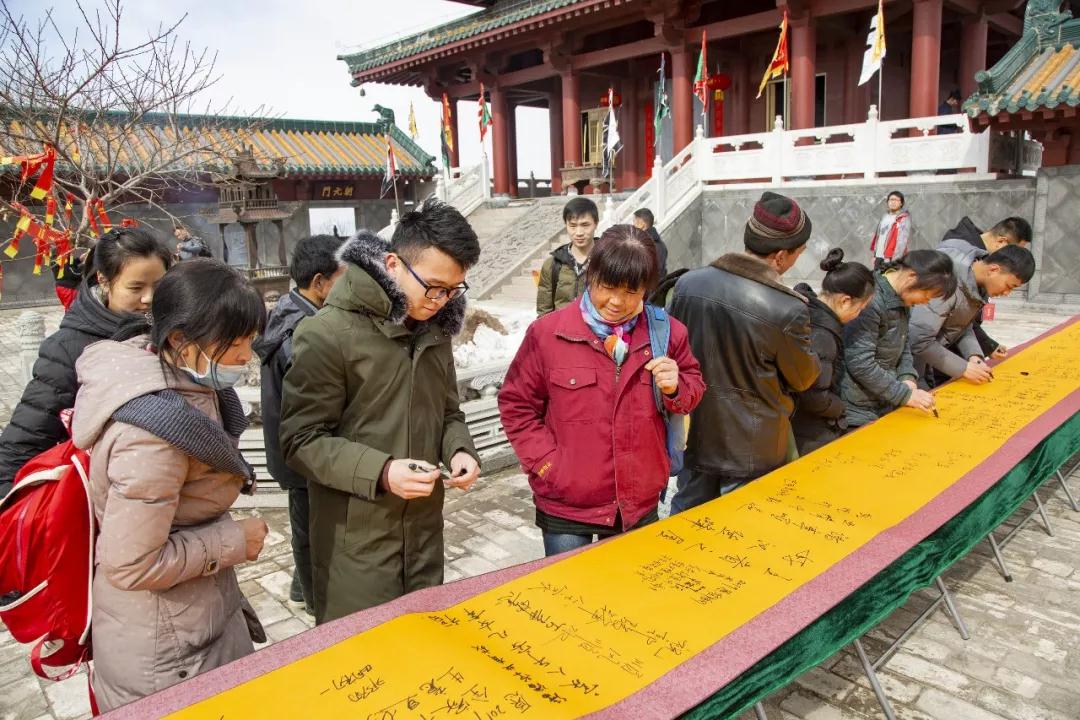 在天壇極頂的百米祈福長卷上書寫下夢想,在文人墨客留下流傳千年詩篇的地方寫下自己建設家鄉(xiāng)的決心與志向。