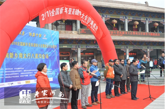 2016年1月1日—2日,國家體育總局和中華全國體育總會等部門,在河南省新鄉(xiāng)南太行八里溝園區(qū)舉行新年登高健身大會。同時新鄉(xiāng)南太行第一屆冰雪節(jié)隆重舉行,來自全國各地的1.2萬名戶外運動愛好者,匯聚八里溝園區(qū)登高健身,迎接新年到來。