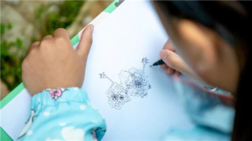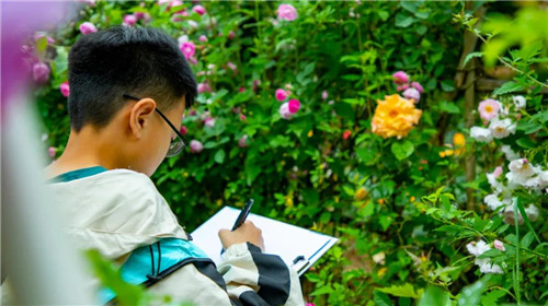 如今當(dāng)人們習(xí)慣拍一張照片,拍一段視頻,記錄并分享生活。而這群可愛的孩子,他們用繪畫記錄著家鄉(xiāng)的美好瞬間。他們或獨(dú)自一人、或幾人成群,在景區(qū)的美景中拿起畫板,拿起畫筆,時(shí)而抬起頭望著盛放的鮮花,若有所思;時(shí)而低頭不語(yǔ),凝神創(chuàng)作......他們充滿活力的身影也成為了景區(qū)另一道風(fēng)景。
