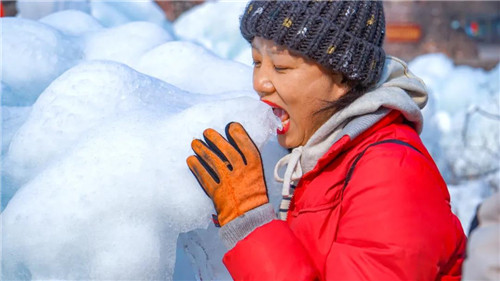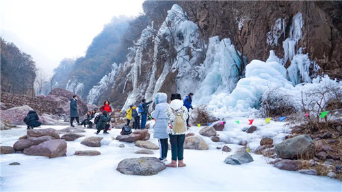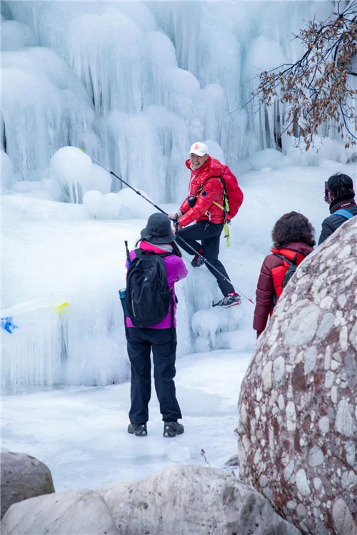 人們佇立在冰掛之間,感受著濃烈的冬意,欣賞著壯觀的美景,與家人或三五好友一起,嬉戲打鬧,拍照留念,分享著自己的心情。