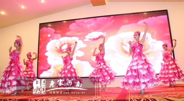 會(huì)議開場(chǎng)舞,是由一群潮氣蓬勃靚麗多彩姑娘們帶來的《牡丹花舞》,裙秀善舞,婀娜多姿,猶如盛開的牡丹花;