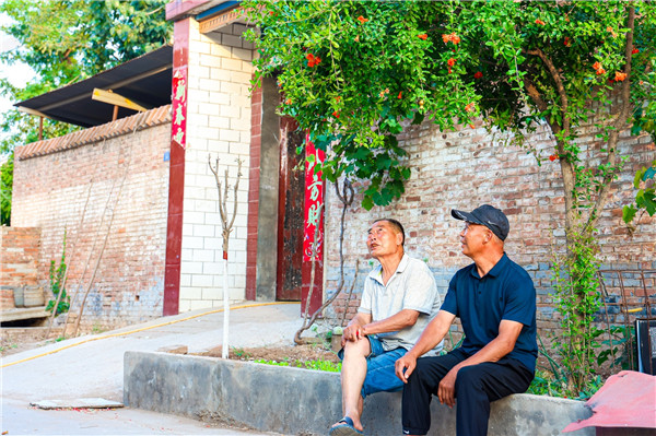 武陟縣三陽(yáng)鄉(xiāng)爐里村村民坐在自家門前新栽種的石榴樹下,喜笑顏開。 林曉 攝