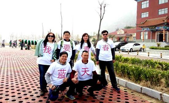 “青春不要”霾”沒(méi),我要藍(lán)天綠水”!4月4日上午,鳳凰網(wǎng)的40多名網(wǎng)友,自發(fā)來(lái)到洛陽(yáng)新安黛眉山景區(qū),進(jìn)行了為期一天的綠色環(huán)保之旅。他們被黛眉山景區(qū)的藍(lán)天白云、青山綠水所秒倒。在與大自然親密接觸的同時(shí),幾名特別用心的網(wǎng)友竟然穿上了特制的環(huán)保T恤,上面赫然寫著“青春不要”霾”沒(méi),我要藍(lán)天綠水”的紅色大字格外醒目。他們?cè)谏缴细吆?ldquo;青春不要”霾”沒(méi),我要藍(lán)天綠水”,用自己的實(shí)際行動(dòng)踐行環(huán)保理念,保護(hù)生態(tài)環(huán)境。