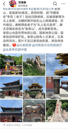 首屆全球文旅創(chuàng)作者大會時間為2019年5月-10月,為期半年!欒川將得到字節(jié)跳動公司旗下所有新媒體平臺上千萬甚至上億、數(shù)十億的流量推薦!