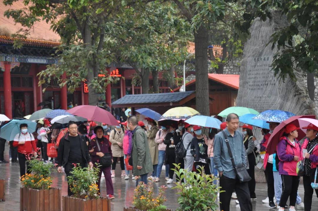秋風(fēng)細(xì)雨,游客在山水中感受假期的美好