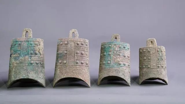 陜州城墓地出土的戰(zhàn)國(guó)銅編鐘。三門峽市文物考古研究所供圖