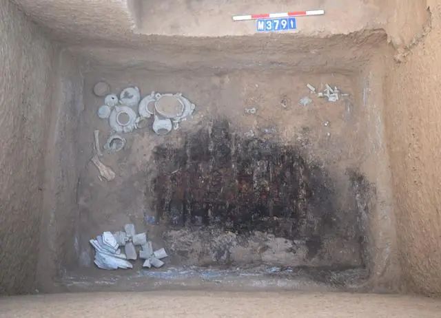 河南三門峽陜州城墓地遺址四鼎貴族墓葬M379。(三門峽市文物考古研究所供圖)