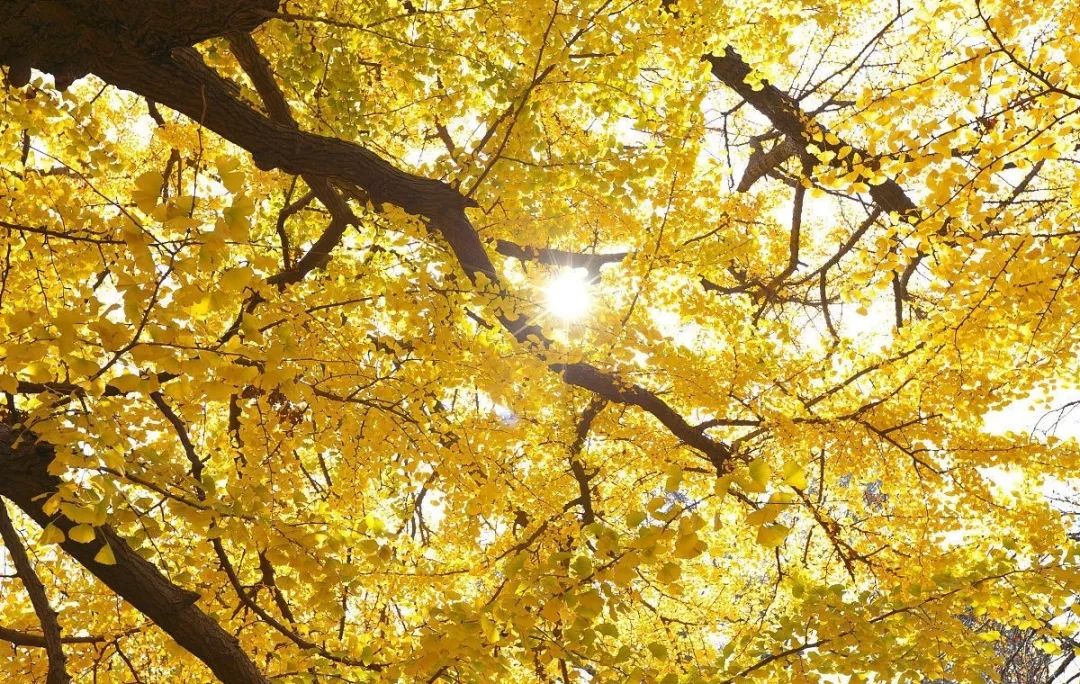 在這里,你可以看到各種顏色的銀杏,就像一位畫家,從折扇似的葉子邊緣不緊不慢地向中間著色,柳綠、青黃、淺黃、金黃……