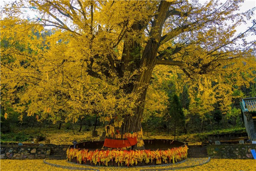 秋季,濟源人都會惦記一位住在王屋山景區(qū)的老朋友。千年銀杏,老子手植,一棵2000余歲的歷史的銀杏樹,每當秋天到來,銀杏樹就變成了一片金黃,在深山里獨自綻放著璀璨光芒。