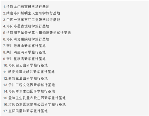附:首批17家“洛陽(yáng)市研學(xué)旅行基地”名單