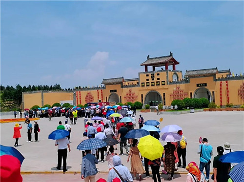 一輛輛旅游巴士猶如一節(jié)節(jié)列車車廂,滿載著來自福建省的游客,走進地下古村落,投入大地的懷抱,開啟了夏日的清涼之旅。