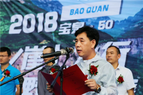 輝縣市委常委、新鄉(xiāng)南太行管委會常務(wù)副主任王建宣布2018中國·寶泉‘崖上太行’越野挑戰(zhàn)賽”開幕