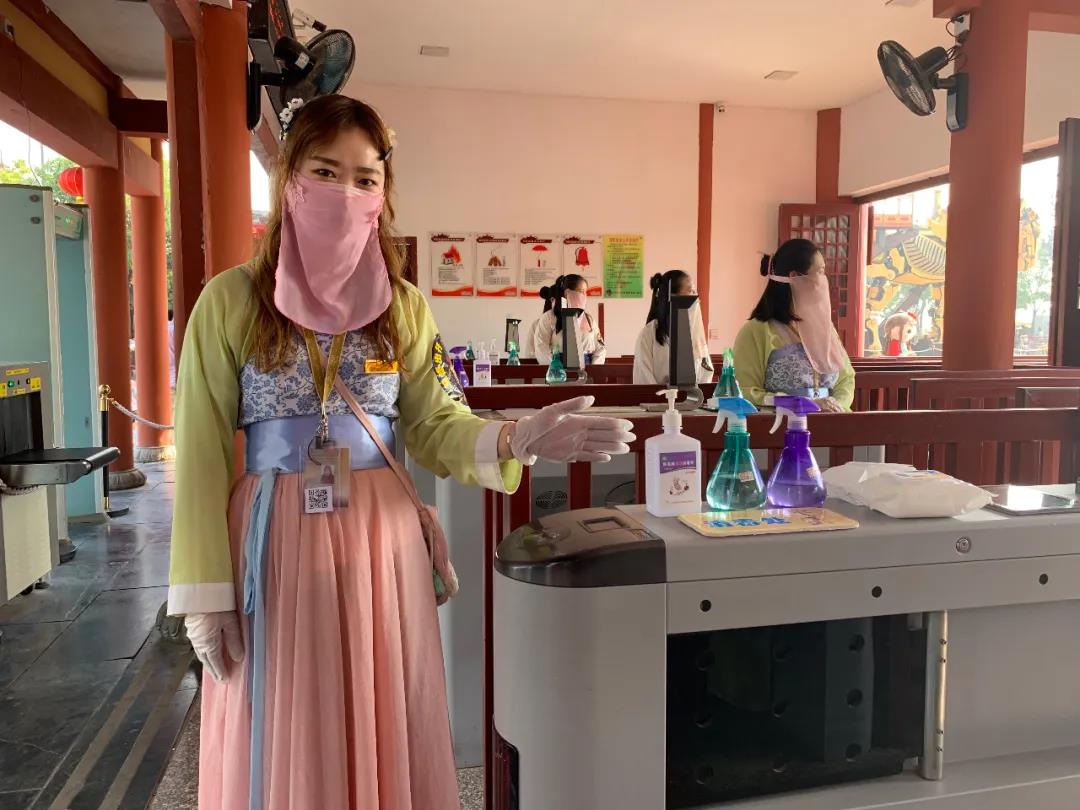 認真做好景區(qū)疫情防控工作,對每位入園游客都需做到“一進一測一登記一審核”,確保游客安全游園。