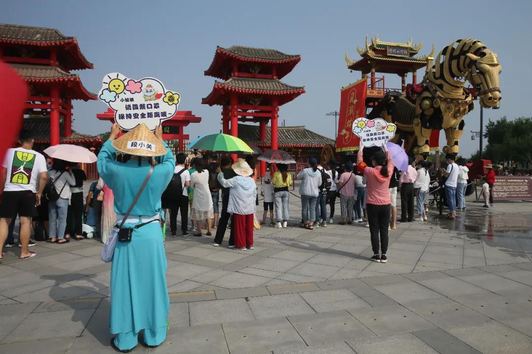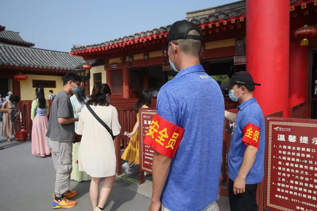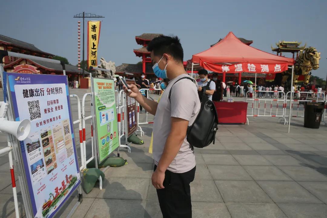 端午小長假期間,清明上河園景區(qū)嚴格遵守“實名制分時段預約”制度,鼓勵游客線上預約購票,制定出游計劃,間隔入園,錯峰旅游。